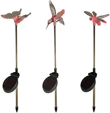 Design: the solar garden lights have the motifs 1 x solar hummingbird, 1 x solar dragonfly and 1 x solar butterfly