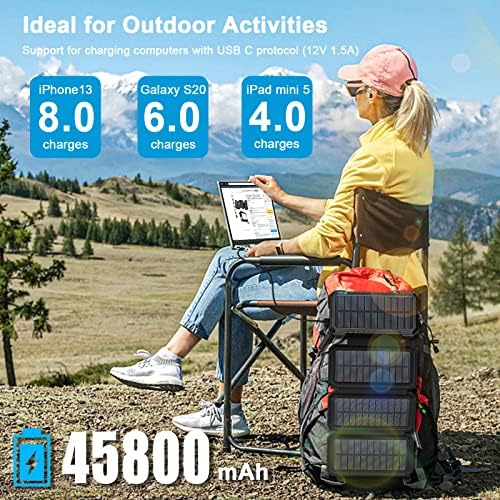 Outdoor backup power: 45800 mAh portable solar charger offers you enough power to charge an iPhone 12 8 times, a Samsung S20 5 times and 3 devices at the same time.